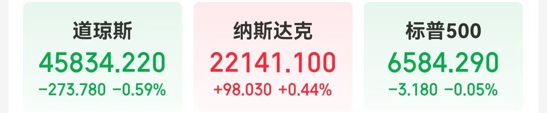 当地时间9月12日,美股三大指数收盘涨跌不一。道琼斯指数跌0.59%;标普500指数跌0.05%;纳斯达克综合指数涨0.44%,续创收盘新高。