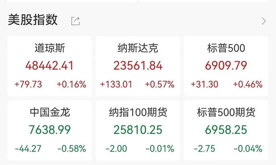 当地时间12月23日,美股三大指数集体收涨,均录得日线4连涨。纳指涨0.57%,标普500指数涨0.46%,道指涨0.16%。其中,标普500指数录得收盘新高。